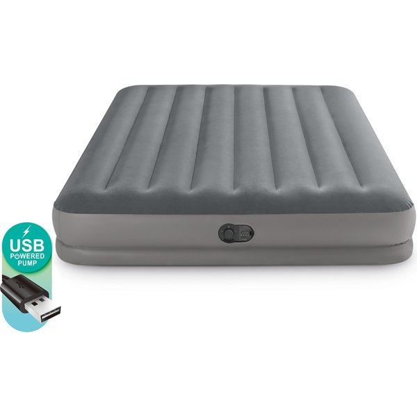 Solidny materac z odpornego na uszkodzenia, trwałego materiału PVC o wymiarach 152 x 203 cm jest idealny dla dwóch osób. Szczelna konstrukcja została obita miłym w dotyku welurem, który jest przyjemny dla skóry. Zamontowana pompka z wejściem USB szybko napompuje materac. Prześpij noc spokojnie na wygodnym modelu marki Intex.
