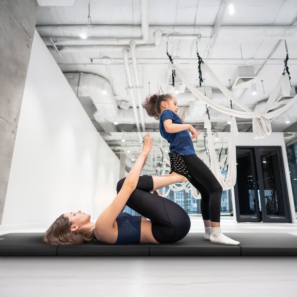- Swoboda podczas ćwiczeń: Duża powierzchnia zapewnia komfortowe warunki do rozciągania, akrobatyki czy treningów funkcjonalnych bez ograniczeń przestrzennych.
