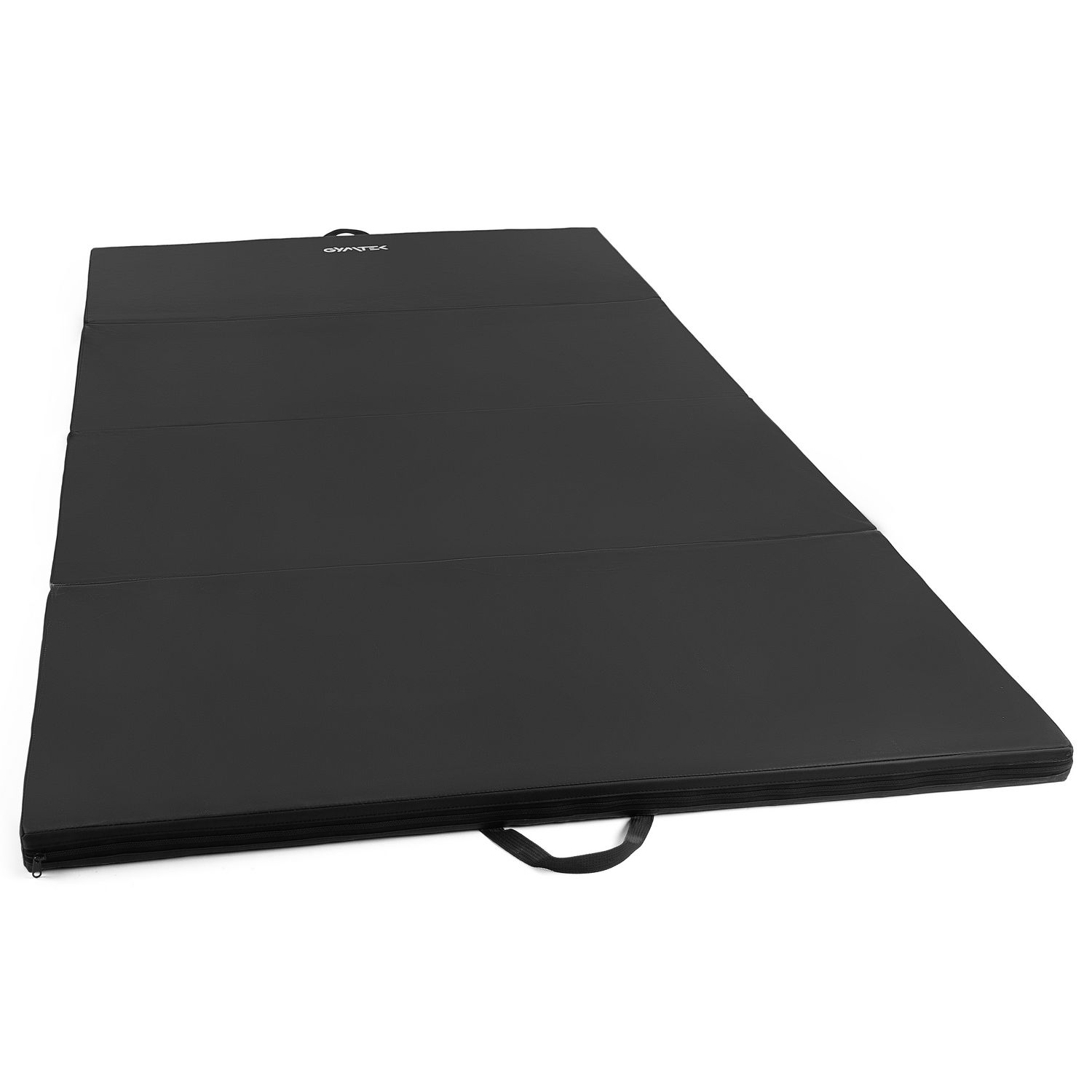 - Wygodny transport i przechowywanie: Po złożeniu materac zajmuje niewiele miejsca, a solidne uchwyty pozwalają łatwo przenieść go z pokoju do pokoju lub zabrać na trening poza domem.