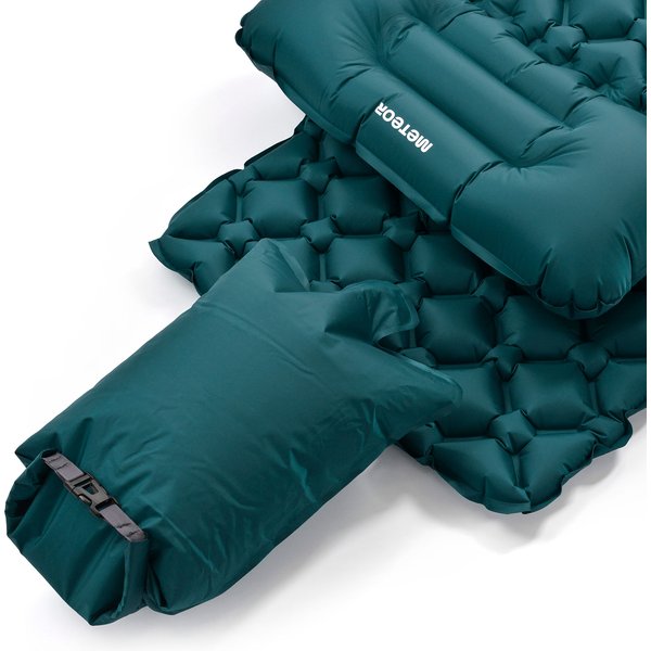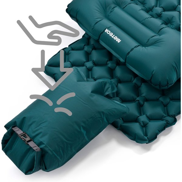 Materac trekkingowy z zagłówkiem Meteor to idealny wybór dla osób poszukujących lekkości i wygody podczas spania na szlaku. Dzięki dmuchanej konstrukcji oraz komórkom w kształcie plastra miodu, zapewnia doskonałą izolację cieplną. Wbudowana poduszka oraz worek drybag i szeroki zawór ułatwiają szybkie napompowanie materaca. Niska waga i możliwość spakowania do niewielkich rozmiarów sprawiają, że materac Meteor to niezawodny towarzysz każdej wyprawy.