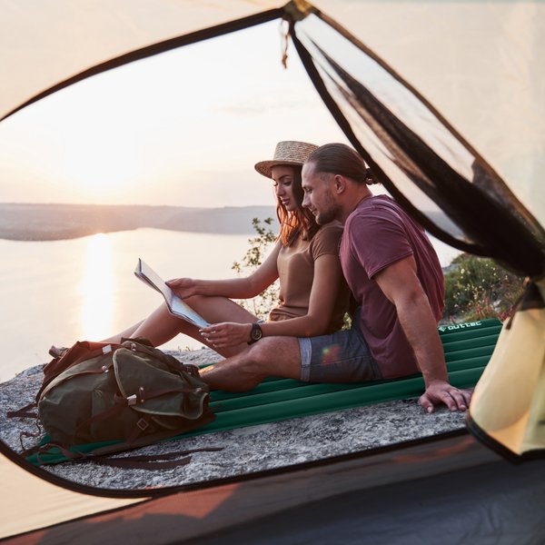 Materac został wykonany z solidnego nylonu pokrytego powłoką TPU. Taka konstrukcja zapewnia skuteczną ochronę przed wilgocią, przetarciami i przebiciami, co czyni go idealnym towarzyszem w trudnym terenie i zmiennych warunkach pogodowych.