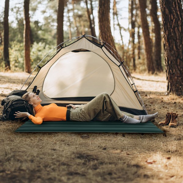 - Wygoda na każdym terenie: Nierówności, kamienie czy korzenie przestają być problemem – materac skutecznie je niweluje, zapewniając równą i miękką powierzchnię do leżenia.