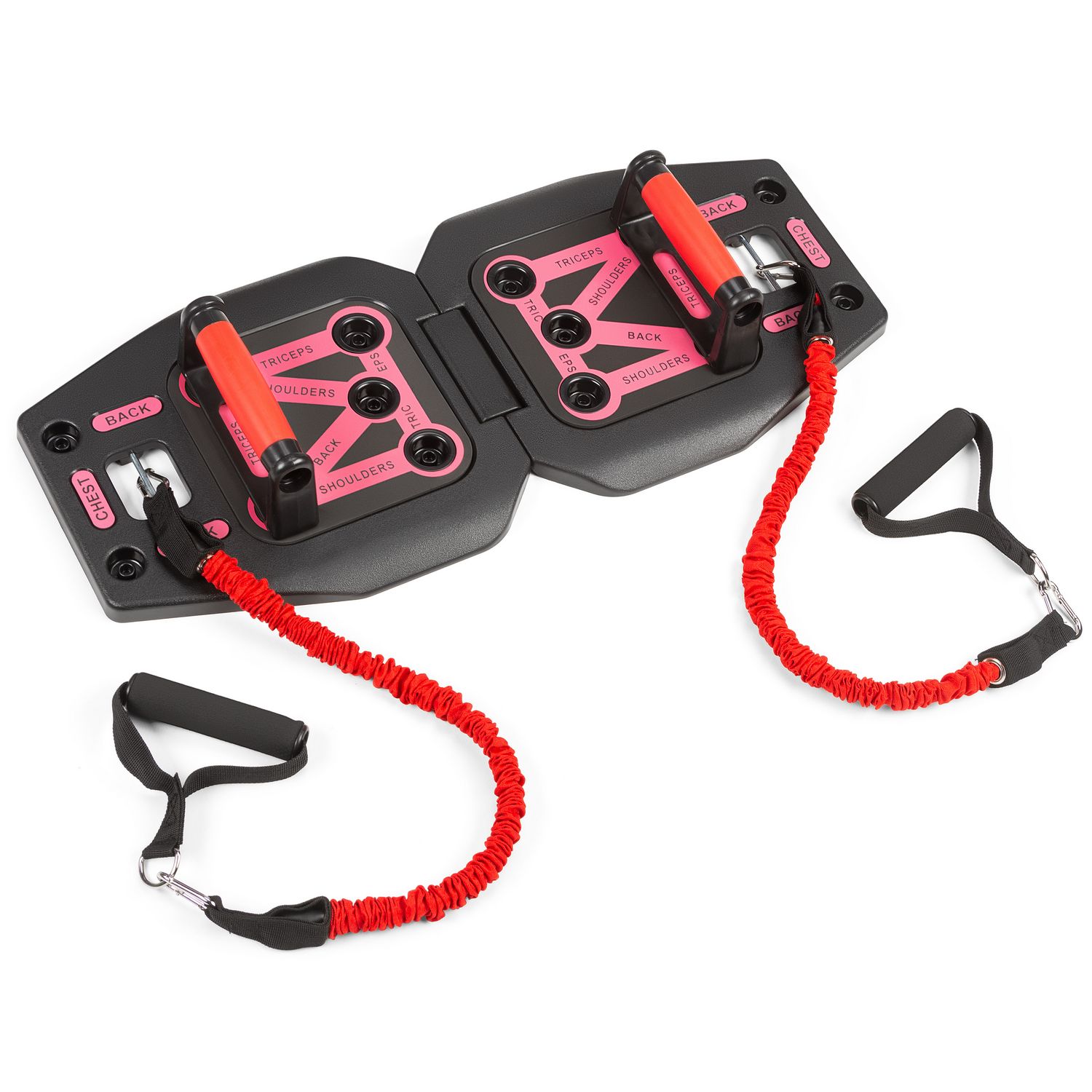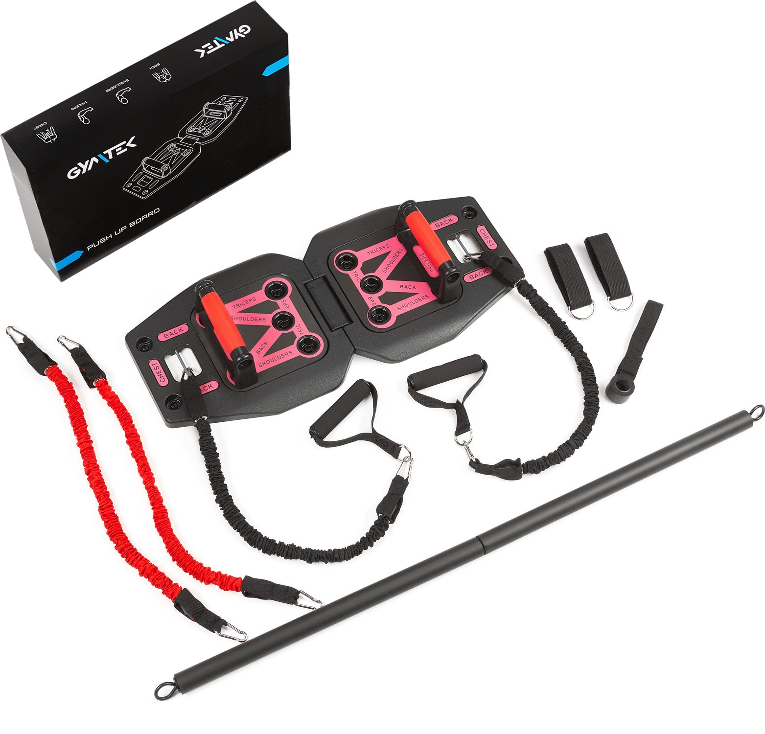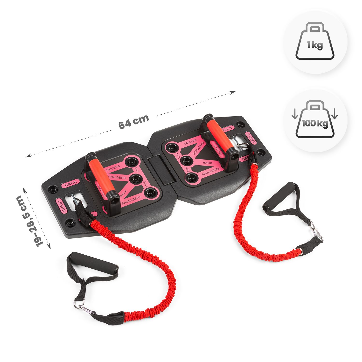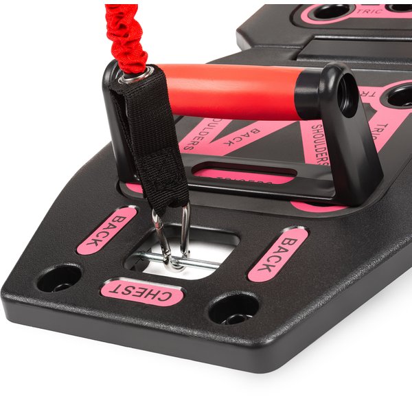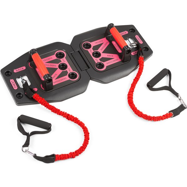 - Trening całego ciała w jednym zestawie: Deska z uchwytami, ekspanderami oraz drążkami pozwala wzmacniać wszystkie główne partie mięśni.