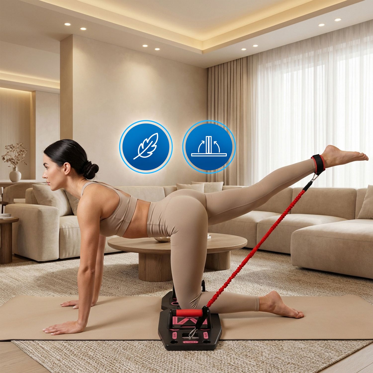 - Wszechstronność domowego treningu: Zastępuje kilka urządzeń, umożliwiając ćwiczenia siłowe, funkcjonalne i mobilizacyjne na niewielkiej przestrzeni.
