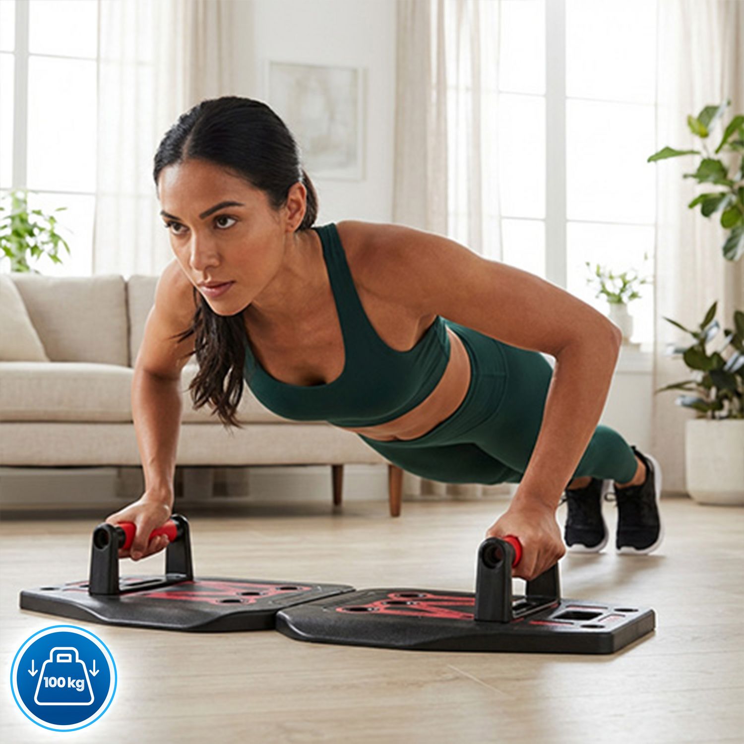 Zestaw został wykonany z solidnych tworzyw, które gwarantują trwałość nawet przy intensywnym użytkowaniu. Antypoślizgowe podkładki pod deską zwiększają przyczepność do podłoża, zapewniając stabilność podczas ćwiczeń w różnych pozycjach i z użyciem oporu.
