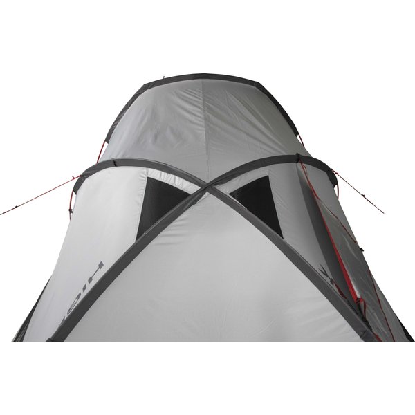 Zapomnij o dusznych nocach, po których człowiek czuje się jeszcze bardziej niewyspany niż przed położeniem się spać. Namiot został wyposażony została w otwory wentylacyjne zapewniające stały przepływ powietrza oraz system Vario Vent Control zapewniający świeże powietrze wewnątrz namiotu. System ten można komfortowo obsługiwać od środka. Duże okno zapewnia dostęp do świeżego powietrza, a w razie pogorszenia pogody możesz je łatwo zamknąć wewnętrzną klapą. Po zamknięciu klapy obieg powietrza zapewniają dwa dodatkowe systemy wentylacyjne.