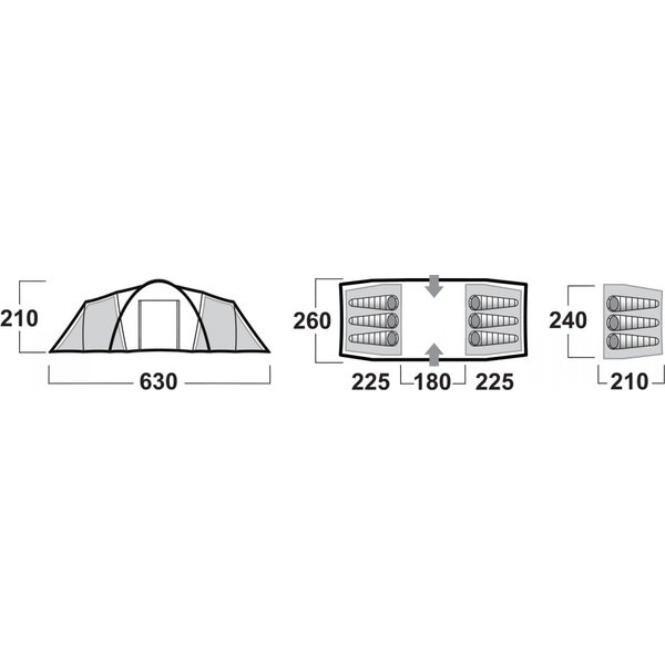 Jego głównym atutem jest ponadstandardowa przestrzeń wewnętrzna, która składa się z dwóch oddzielnych, przestronnych sypialni oraz dużego, wielofunkcyjnego holu. Dzięki możliwości całkowitego odpięcia sypialni, namiot daje elastyczność w organizacji wnętrza, a hol może pełnić funkcję świetlicy lub przestrzeni jadalnianej, co znacząco podnosi komfort użytkowania. Jednym z kluczowych elementów, które wyróżniają ten model, jest solidna konstrukcja krzyżowa ze wzmocnionymi prętami durawrap. Ten zaawansowany materiał zapewnia doskonałą stabilność namiotu w różnych warunkach pogodowych, co oznacza, że namiot pozostaje bezpieczny i stabilny nawet podczas silnych wiatrów czy burz.