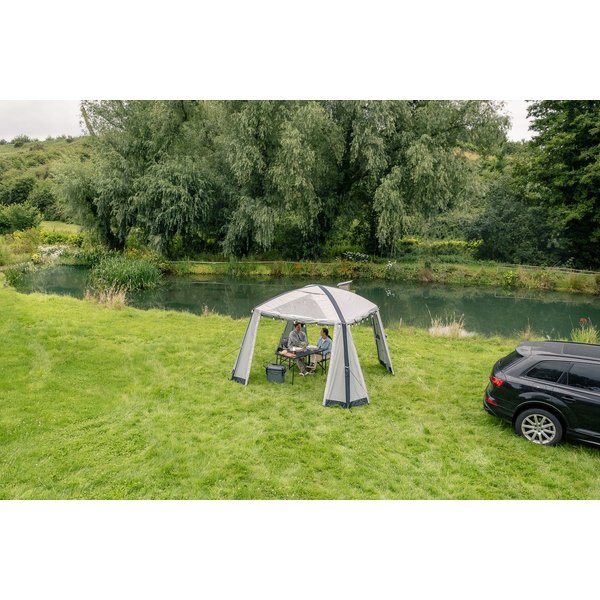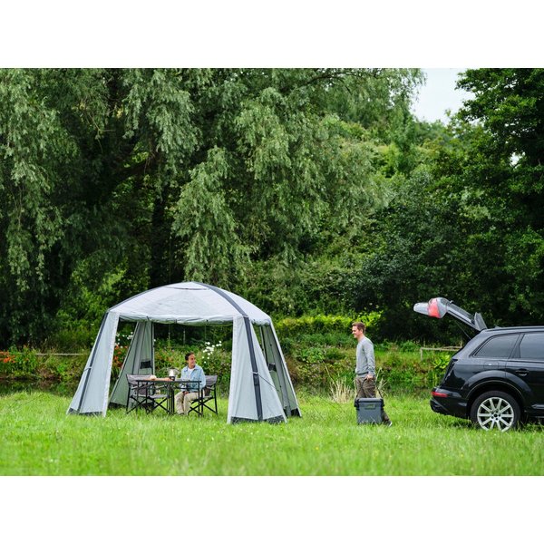 Air Shelter M dostarczany jest w komplecie z akcesoriami, takimi jak ściana przeciwsłoneczna i drzwi, co zwiększa jego funkcjonalność. Te dodatkowe elementy pozwalają na dostosowanie przestrzeni do indywidualnych potrzeb, oferując więcej prywatności i ochrony przed wiatrem. Transport i przechowywanie namiotu jest niezwykle proste dzięki dołączonej torbie transportowej, która ułatwia jego pakowanie i przenoszenie.