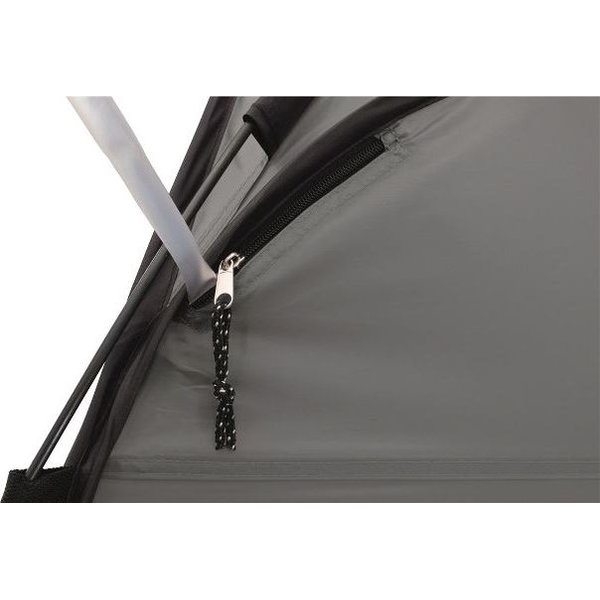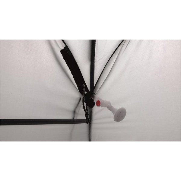 Lekka konstrukcja waży niewiele ponad 2 kilogramy, a po złożeniu mierzy tylko 62 x 3 centymetry, więc nie zajmuje dużo miejsca w transporcie. Little Loo wykonano z mocnego, odpornego na uszkodzenia poliestru, który dodatkowo wzmocniono warstwą PU, która nadaje tkaninie wodoodporne właściwości na poziomie 1500 milimetrów. Samorozkładająca się konstrukcja pop up jest łatwa do rozłożenia, montaż jest także bardzo szybki i nie wymaga wiele wysiłku. Elastyczne pałąki i zewnętrzne odciągi zapewniają wysoką stabilność. Do wewnątrz prowadzi jedno wejście z zamkiem błyskawicznym. Wysokość wewnątrz wynosi aż 180 centymetrów, przestrzeń Little Loo będzie więc komfortowa dla większości osób. Otwór z zamkiem błyskawicznym u góry umożliwia instalację słuchawki prysznicowej. Kosmetyki do kąpieli możesz wygodnie przechowywać w zintegrowanej kieszonce wewnętrznej. Model posiada także specjalny zaczep na ręcznik. Namiot sprawdzi się także jako toaleta lub miejsce do przebrania się. Little Loo świetnie zastępuje łazienkę podczas kempingowych wycieczek.