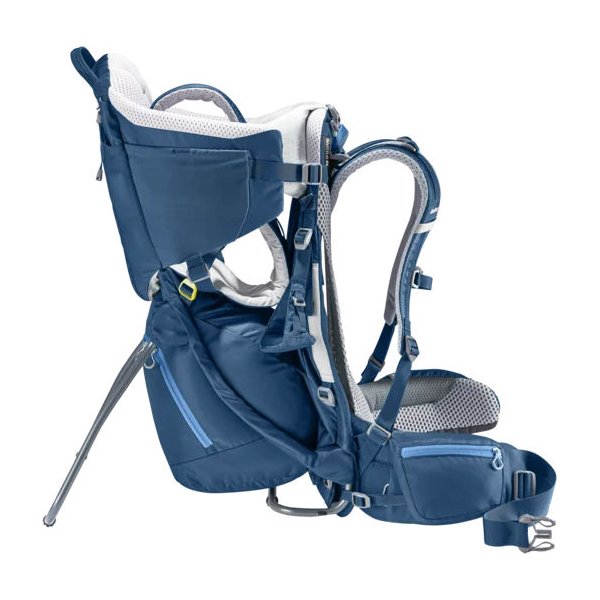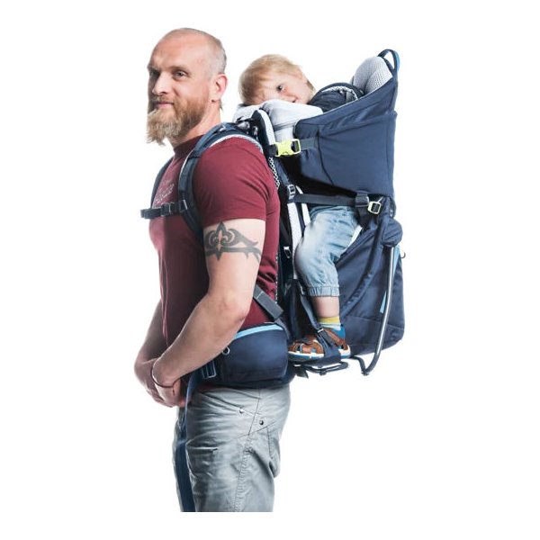 Największą zaletą nosidła Kid Comfort jest wbudowany system nośny Aircomfort Sensic Vario, który posiada możliwość regulacji wysokości, dlatego plecak może być noszony przez każdego rodzica. Możesz więc dopasować całość do swojej postury, a jest to istotny czynnik, ponieważ doskonal dobrany plecak automatycznie obniża wagę noszonego ciężaru. Komfort jest zapewniony także dla dziecka: siedzisko jest wykonane z przewiewnego materiału, ma siatkowe boki, a do tego można je łatwo dopasować do potrzeb dziecka oraz jego wzrostu i wieku. Ergonomicznie wyprofilowane wnętrze zostało dodatkowo miękko wyściełane, dlatego dziecko będzie czuło się w środku jak we własnym łóżeczku. Solidna, składana nóżka zapewnia stabilność nosidełka podczas sadzania dziecka. Dodatkowo starsze dzieci mogą samodzielnie wchodzić do siedziska dzięki odpinanemu wejściu z boku nosidełka.