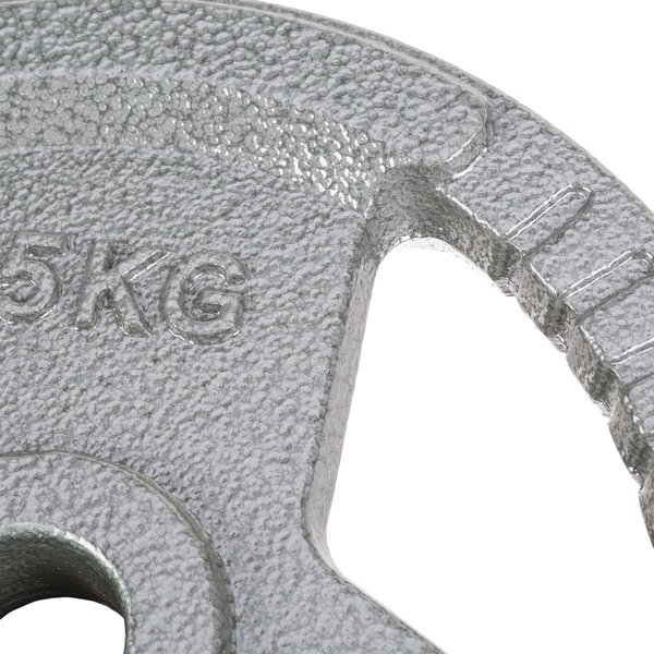 - Szybka i wygodna zmiana obciążenia: Konstrukcja z otworami ułatwia zakładanie i zdejmowanie talerzy z gryfu, co przyspiesza zmianę obciążenia między seriami i zwiększa efektywność treningu.