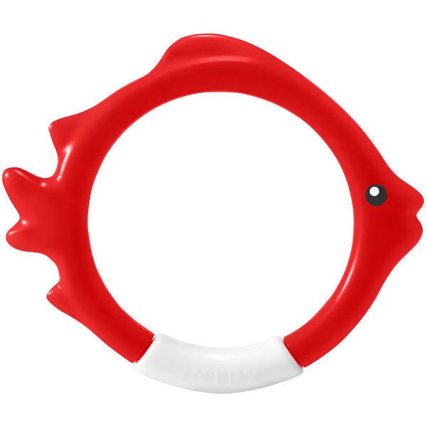 Kolorowe obręcze rybki marki Intex mają opływowe kształty, dzięki czemu dziecko łatwo chwyci je pod wodą.