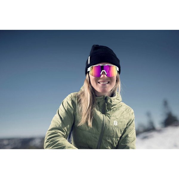 Design okularów Matrix Bliz to również mocna strona tego produktu. Jednolita, duża soczewka nie tylko wygląda nowocześnie, ale także zwiększa pole widzenia. Otwory wentylacyjne na górze soczewki zapewniają odpowiednią cyrkulację powietrza, co zapobiega zaparowaniu soczewek, co jest niezwykle istotne podczas intensywnej aktywności fizycznej. Kształt opływowy i pełna ramka dodają okularom sportowego charakteru, a logo marki umieszczone na zausznikach i nad soczewką podkreśla ich ekskluzywność.