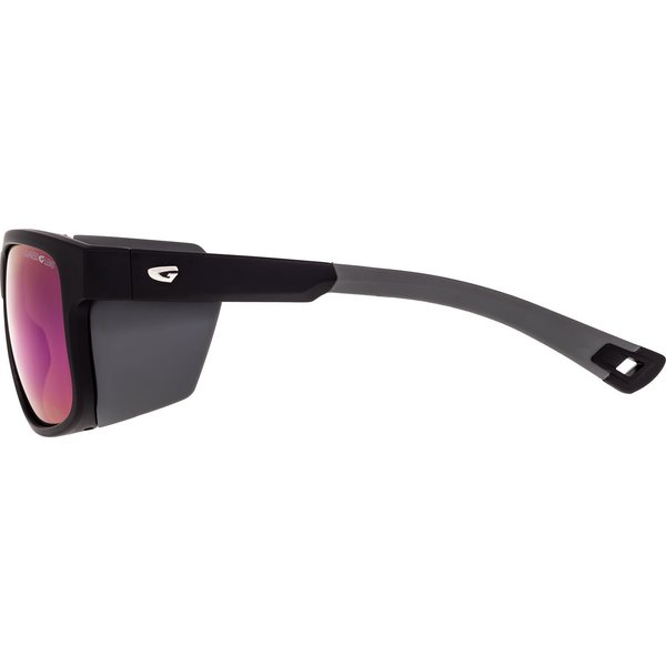 Model ten zapewni ochronę nawet w miejscach o bardzo wysokim nasłonecznieniu. Okulary posiadają dodatkowe, wymienne osłonki boczne, które zwiększają ochronę przed światłem słonecznym. Soczewki polaryzacyjne oraz lustrzana powłoka blokują odblaski spowodowane odbiciem światła słonecznego od śniegu, dzięki czemu zwiększa się bezpieczeństwo użytkownika. Okulary chronią oczy przed szkodliwym promieniowaniem, zapobiegają zmęczeniu oczu i zapewniają wysoki komfort widzenia.