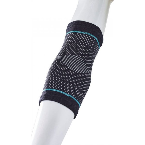 Kompresyjna opaska na łokieć stabilizuje kontuzjowane miejsce i jednocześnie zapewnia swobodny zakres ruchów. Konstrukcja opaski jest bezszwowa i specjalnie wyprofilowana dzięki czemu wspomaga przepływ krwi i tym samym przyspieszająca regenerację. Opaska zmniejsza obrzęki i niweluje uczucie zmęczenia mięśni. Materiał ma właściwości oddychające. Stabilizator oferuje 4 poziomy wsparcia: