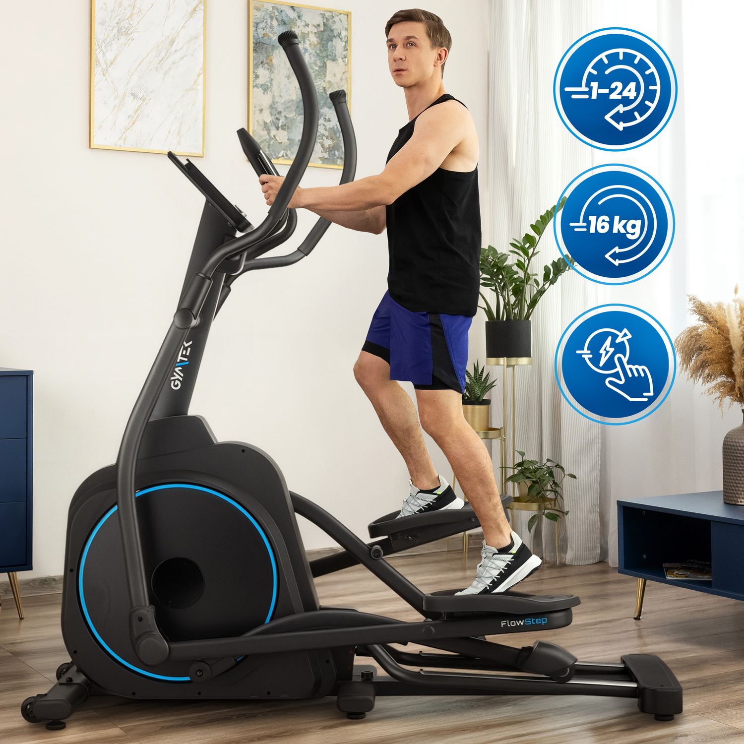 XCF7500 wyposażony został w nowoczesny, elektromagnetyczny system oporu o wadze 16 kg. Elektroniczna, 24-stopniowa regulacja pozwala precyzyjnie dopasować intensywność treningu do indywidualnych potrzeb.