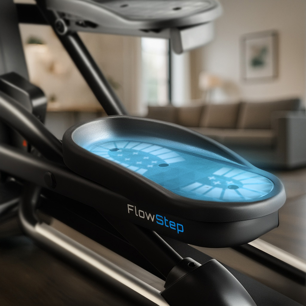 Model wyposażony został w system przedniego napędu, który wspiera naturalny ruch ciała podczas ćwiczeń. Przemyślana konstrukcja zapewnia bliskie ustawienie stóp, co zwiększa komfort użytkowania i jednocześnie ogranicza obciążenie stawów. Dzięki temu możliwe jest bardziej efektywne budowanie kondycji aerobowej.