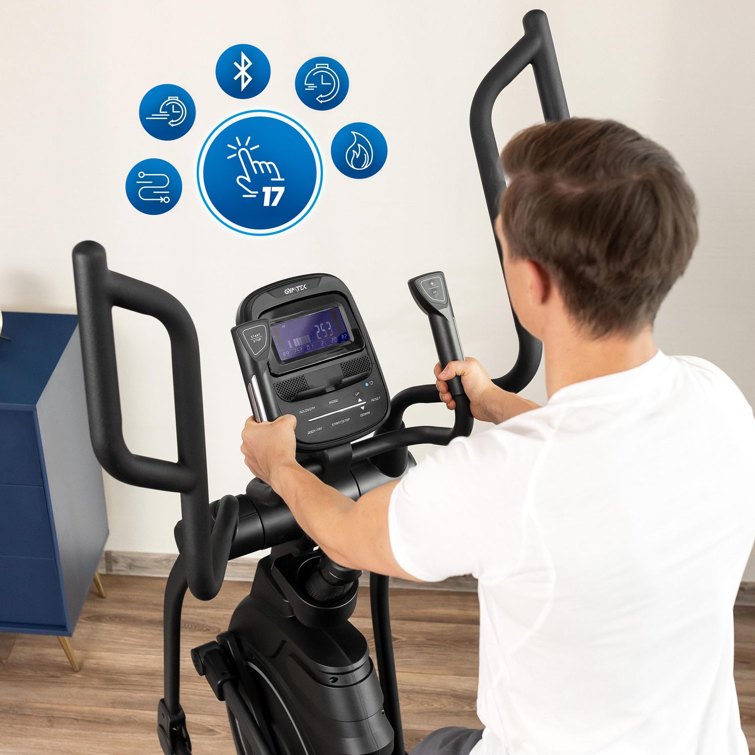 - Łączność Bluetooth: Dzięki modułowi Bluetooth orbitrek można sparować z aplikacjami FitShow oraz iConsole, co umożliwia wirtualne treningi na realistycznych trasach i rywalizację z innymi użytkownikami. Taka interaktywna forma ćwiczeń zwiększa motywację.