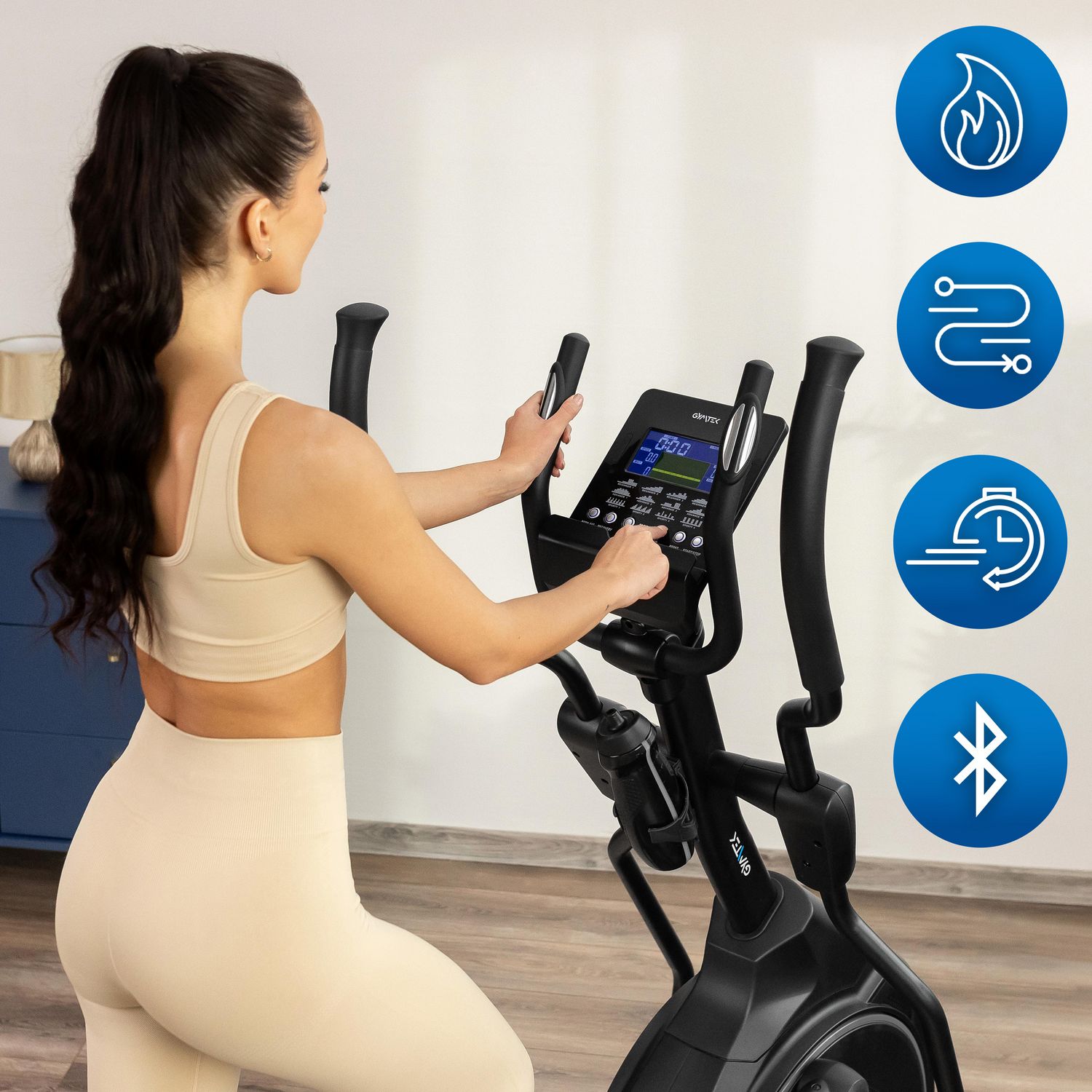 Orbitrek elektromagnetyczny XCF9200 Gymtek to rozwiązanie dla osób szukających komfortowego i efektywnego treningu w domu. Wbudowany samogenerator eliminuje konieczność podłączania urządzenia do prądu, a system przedniego napędu gwarantuje naturalny ruch. Dzięki technologii Silent Glide trening jest niemal bezgłośny. Nowoczesny komputer oferuje aż 17 programów, łączność Bluetooth i integrację z aplikacją iConsole+, zapewniając różnorodność i motywację podczas ćwiczeń. Stabilne, antypoślizgowe pedały i solidna konstrukcja z wykorzystaniem nowoczesnej technologii spawania gwarantują trwałość i wygodę.