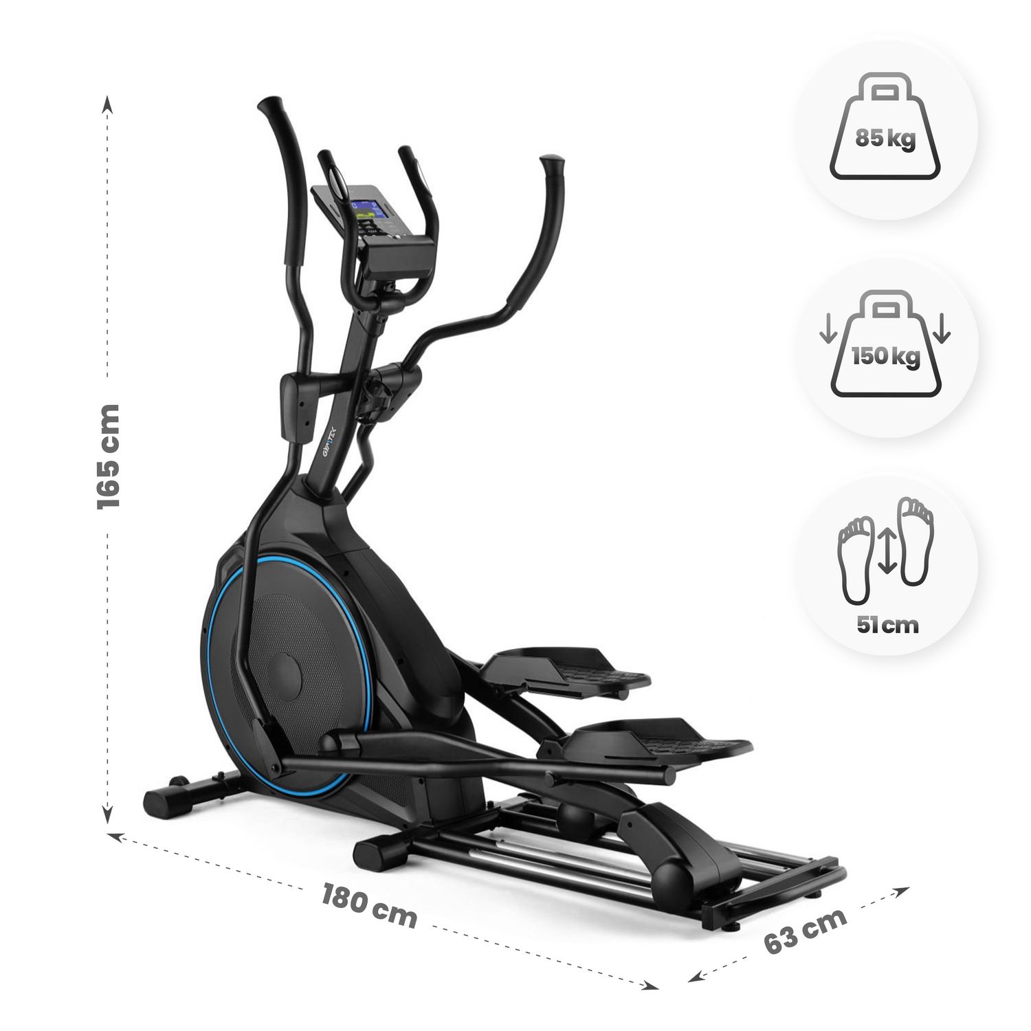 - Odporność na intensywne użytkowanie: Wytrzymałe materiały niezależne od recyklingu w połączeniu z precyzyjnym spawaniem sprawiają, że orbitrek zachowuje stabilność nawet podczas intensywnych treningów, niezależnie od obciążenia.