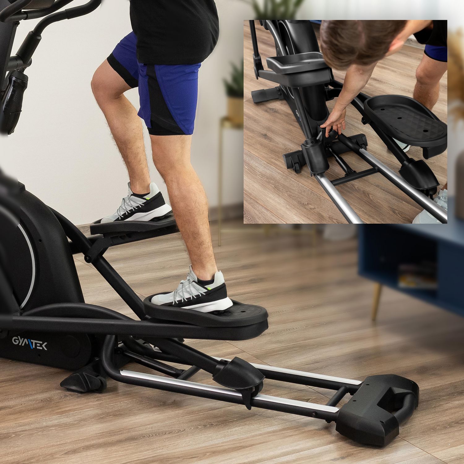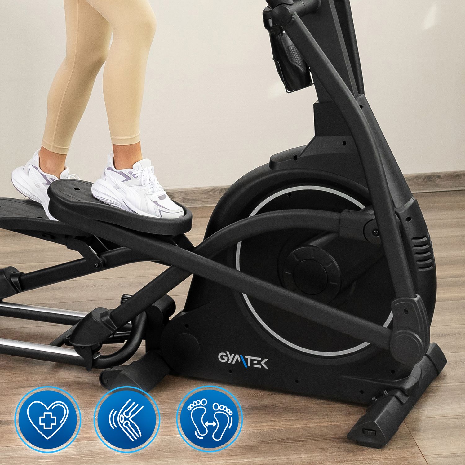Dłuższa szyna zwiększa stabilność orbitreka, co wpływa na pewność ruchów podczas intensywnych sesji. Innowacyjny system składania umożliwia szybkie i wygodne złożenie sprzętu, oszczędzając cenną przestrzeń podczas przechowywania. Mechanizm działa płynnie, co ułatwia codzienne użytkowanie bez zbędnego wysiłku.