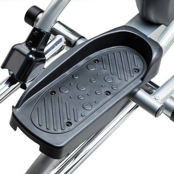 Domowy orbitrek Combre marki Insportline posiada 6-kilogramowe koło zamachowe umiejscowione z przodu, co przekłada się na dłuższy krok i mniejszy skok stopy, a co za tym idzie - bardziej naturalną ścieżkę ruchu.