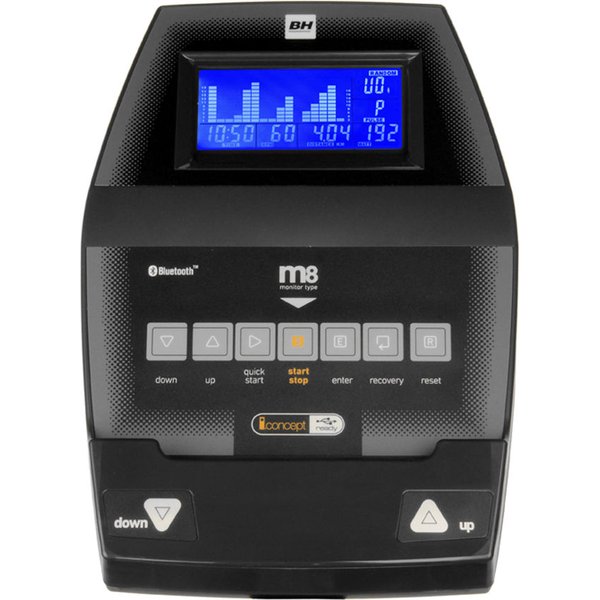 - prędkość/RPM, czas, kalorie, dystans, puls, recovery test, fitness test