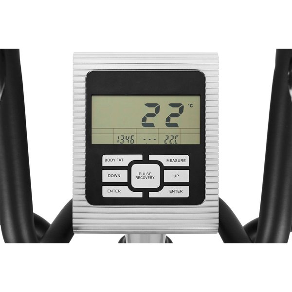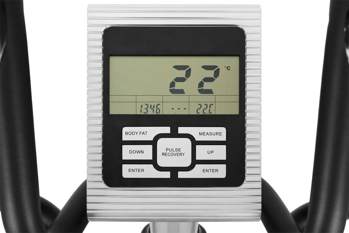 Stacjonarny magnetyczny orbitrek HS-40e z wielofunkcyjnym komputerem i pomiarem pulsu posiada konstrukcję stalową, spawano-skręcaną pokrytą farbą.
