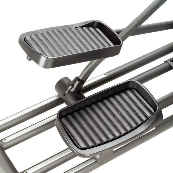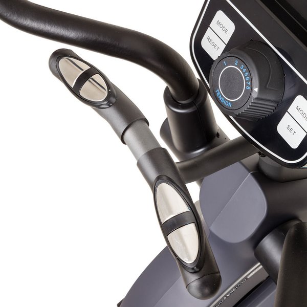 Koło zamachowe waży 8,5kg, co w połączeniu z magnetycznym systemem oporu gwarantuje cichą i płynną pracę. 8 poziomów oporu reguluje się w sposób ręczny. Ten niezwykle cichy, domowy orbitrek posiada solidną konstrukcję, która będzie stabilna stała na każdym podłożu ze względu na system wyrównywania nierówności podłoża. Kółka transportowe ułatwiają transportowanie sprzętu między pomieszczeniami. Czujniki mierzące tętno umożliwiają szybki i dokładny pomiar, byś mógł odbywać efektywne treningi cardio w domowym zaciszu. Antypoślizgowe platformy pod stopy oraz miękkie uchwyty podnoszą bezpieczeństwo i komfort ćwiczeń.
