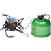 - Skład zestawu: palnik, pompa, multitool, osłona przed wiatrem, odbijacz ciepła, pokrowiec