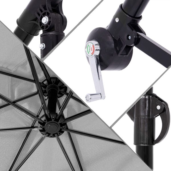 Parasol ogrodowy Springos o szerokości 350 cm to doskonały wybór dla Twojego ogrodu. Dzięki solidnej konstrukcji z pojedynczym słupem bocznym oraz krzyżowej podstawie, parasol jest stabilny i trwały. Regulowany kąt nachylenia pozwala dostosować go do swoich potrzeb, a daszek z kilkoma segmentami zapewnia skuteczną ochronę przed słońcem. Mechanizm korbowy umożliwia łatwe i szybkie składanie oraz rozkładanie parasola. Materiał wodoodporny gwarantuje długotrwałe użytkowanie. Dodatkowo, prosty montaż i demontaż sprawiają, że korzystanie z tego parasola jest wygodne i przyjemne. Odkryj wygodę i funkcjonalność parasola ogrodowego Springos!
