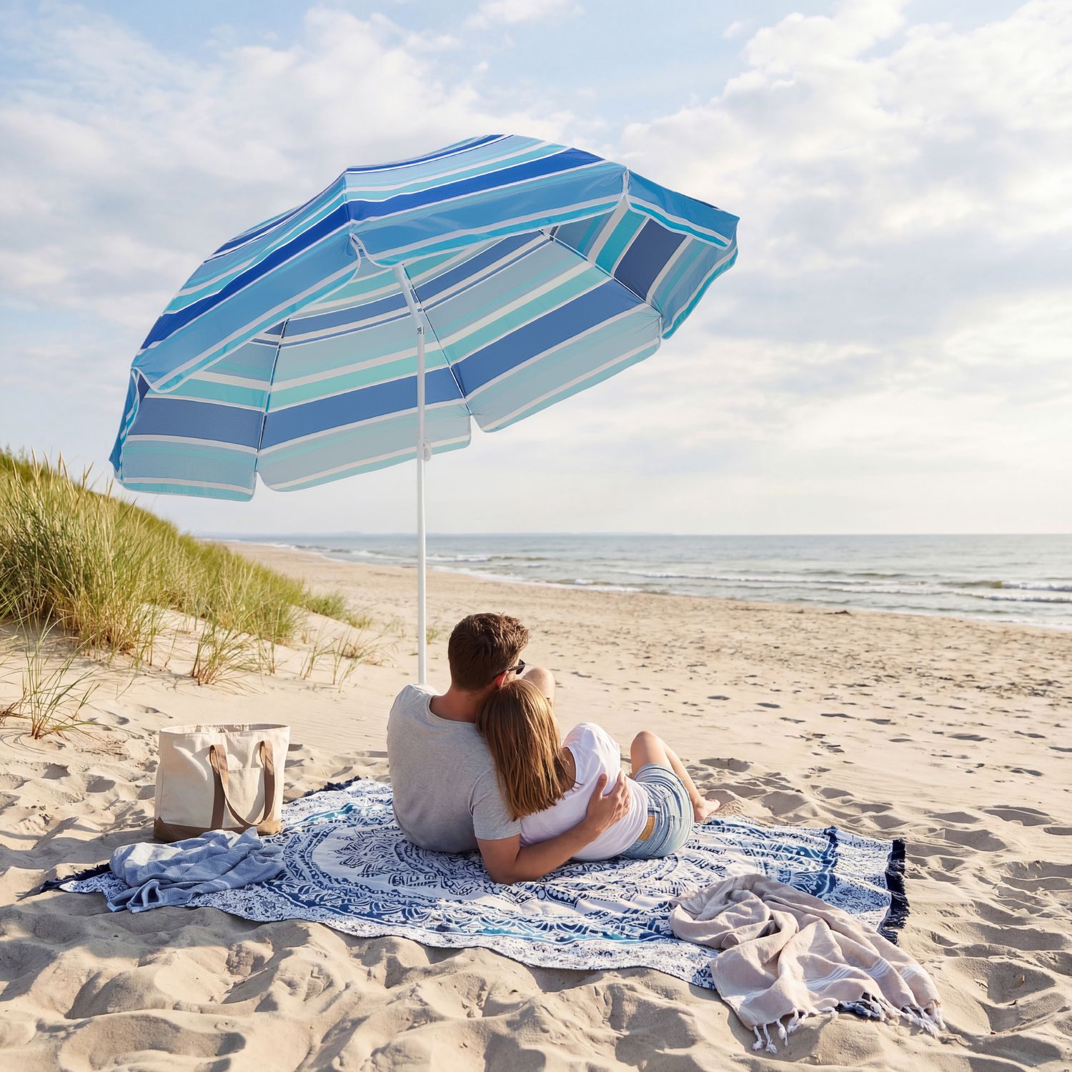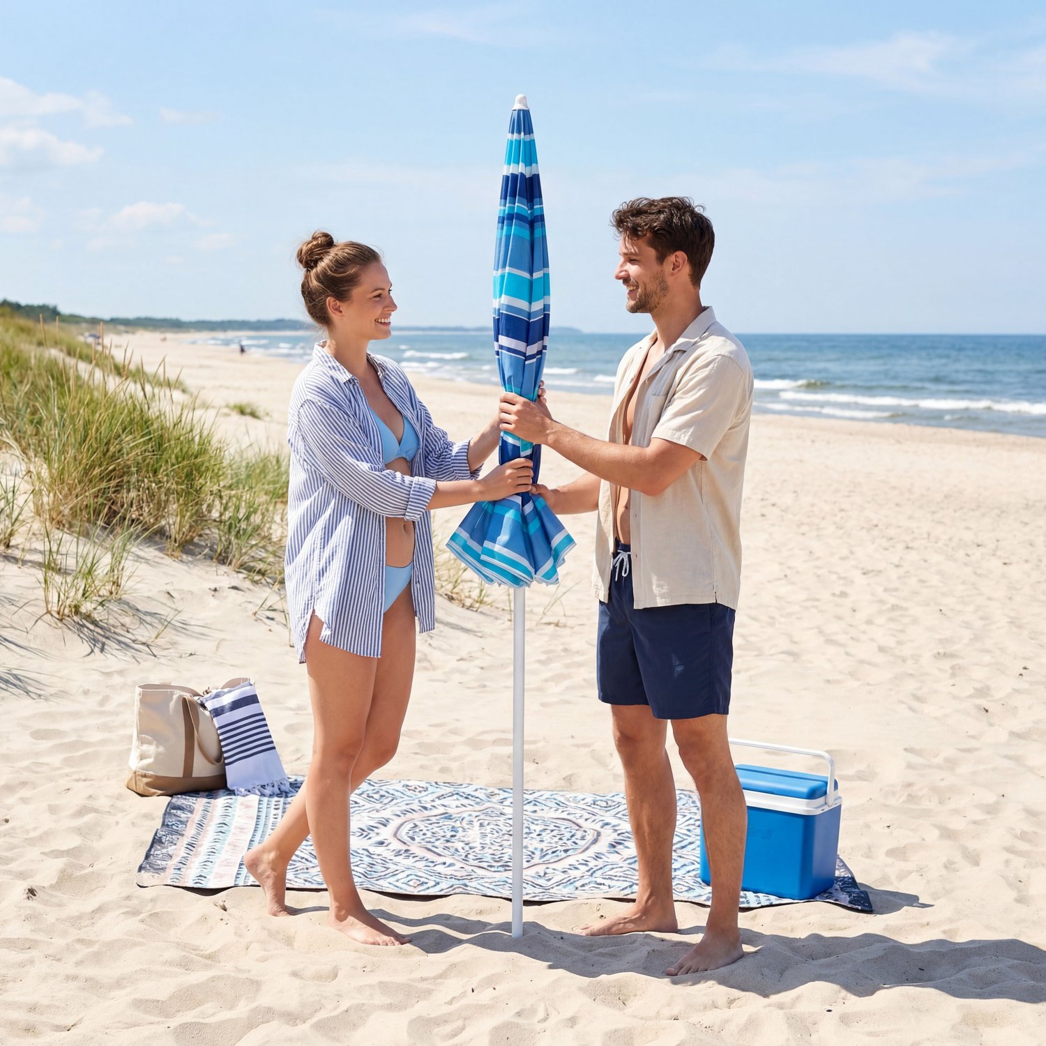 - Łatwy montaż i uniwersalne zastosowanie: Szybkie rozkładanie i wszechstronność sprawiają, że parasol świetnie sprawdzi się w ogrodzie, na tarasie i plaży.