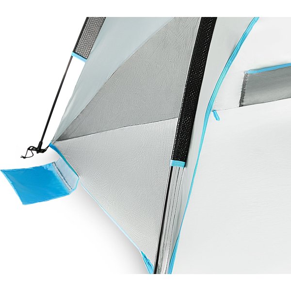 Namiot ma otwierany tył. a jego detale zwiększają ogólną funkcjonalność. Z tyłu znajdują się trzy kieszonki, a w środku dwie kieszonki. Z pewnością docenisz je podczas przechowywania drobiazgów. Postaw na ten namiot marki Outtec i zapewnij sobie ochronę podczas upalnych dni.