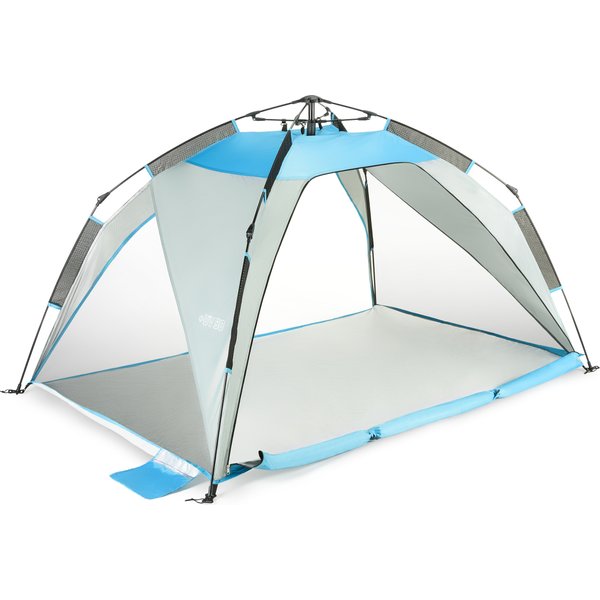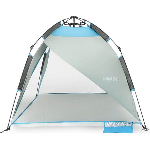 Ten model sprawdzi się znakomicie podczas ciepłych dni. Namiot możesz zabrać ze sobą w każdą podróż, co wynika z możliwości składania. Przemyślana budowa i wykorzystane materiały sprawiają, że namiot bez trudu rozłożysz i złożysz, oszczędzając swój wolny czas. Sam materiał jest przewiewny i lekki, dlatego to idealny wybór na lato. Wymiary modelu są odpowiednie dla więcej niż jednej osoby, więc to dobry model jeżeli wybierasz się na plażę ze znajomymi lub rodziną.