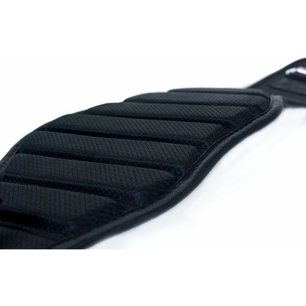 Pas wykonano z bardzo mocnego i odpornego na warunki atmosferyczne nylonu, dzięki czemu jest odporny na uszkodzenia i zabrudzenia. Doskonałe przyleganie pasa sprawia, że odcinek lędźwiowy jest odpowiednio usztywniony podczas ćwiczeń. Rzepy i klamra umożliwiają precyzyjną regulację i świetne dopasowanie do sylwetki.