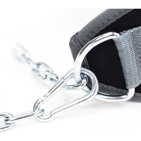 Dodatkowym atutem pasa jest zamocowany łańcuch, który pozwala zawiesić obciążniki co umożliwia szybką i wygodną regulację ciężaru. Model PST04 został wykonany z bardzo wytrzymałego materiału neoprenowego, który będzie służyć Ci przez długi okres czasu nawet podczas intensywnego użytkowania.