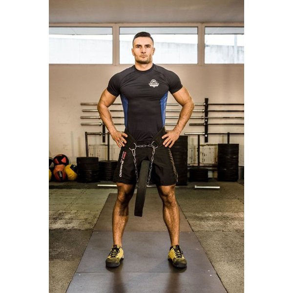 Pas wykonany został we współpracy z zawodnikami sportów siłowych oraz CrossFit, dzięki czemu gwarantuje wygodę oraz odporność na wszelkie uszkodzenia. Zastosowano krótkoogniwowy spawany łańcuch, który zapewni bezpieczeństwo, nawet podczas treningu z dużym obciążeniem. Krótkie ogniwa nie plączą się oraz dobrze się układają przy każdym ruchu. W pasie użyto najwyższej jakości stalowych uchwytów stosowanych w alpinistyce, które są odporne na zerwania oraz odkształcanie nawet przy bardzo dużych obciążeniach. Płaski kształt od strony taśmy równomiernie rozkłada ciężar po całej taśmie, zapobiegając jej zsuwaniu się jak ma to miejsce w uchwytach okrągłych. Z kolei półokrągły kształt uchwytu od strony łańcucha umożliwia trening z ciężarami pod różnymi płaszczyznami (podciąganie na drążku, pompki francuskie, pompki na podwyższeniu). Główne obciążenie pasa spoczywa na bardzo silnej taśmie alpinistycznej o szerokości 50 mm i wytrzymałości do 200 kg, która jest na stałe przyszyta do reszty pasa, przez co nie przesuwa się podczas treningu. Pas wykonano z odpornej na odkształcenia pianki, obszytej przyjemnym w dotyku materiałem, który jest odporny na obtarcia i zabrudzenia, dzięki czemu zachowa estetyczny wygląd przez długi czas. W pasie zastosowano także kopertowe przeszycia, zapewniające trwałość i odporność na rozerwania. Krawędzie pasa zabezpieczono materiałem poliestrowym, używanym do szycia plecaków wojskowych, co skutecznie zabezpiecza przed rozwarstwianiem się poszczególnych warstw pasa. Kształt pasa został odpowiednio wyprofilowany. Szerokość w najszerszej strefie wynosi aż 16,5 cm, dzięki czemu rozkłada ciężar obciążenia na dużej powierzchni, zapobiegając kontuzjom. Konstrukcja pasa zapewnia stabilność podczas treningu.
