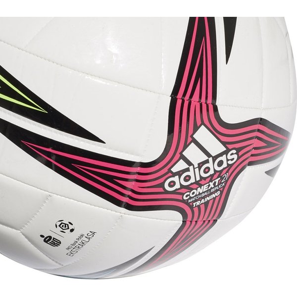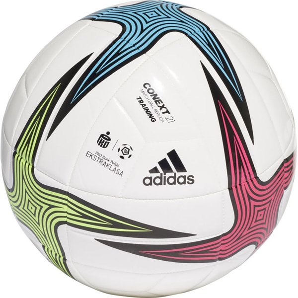 Conext 21 Ekstraklasa Training Ball marki Adidas prezentuje dynamiczny design inspirowany ruchem.