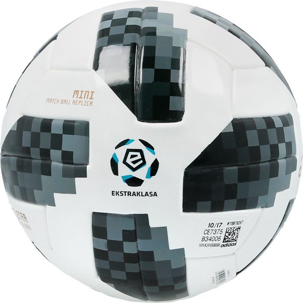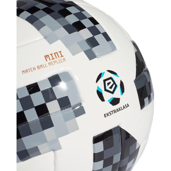 Telstar 18 Ekstraklasa Mini marki Adidas to mini replika piłki, którą rozgrywane są mecze polskiej Ekstraklasy. Pikselowe nadruki, w których motywem przewodnim są krajobrazy Rosji to nawiązanie do gospodarza Mistrzostw Świata 2018.