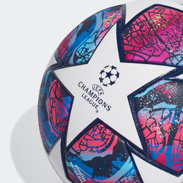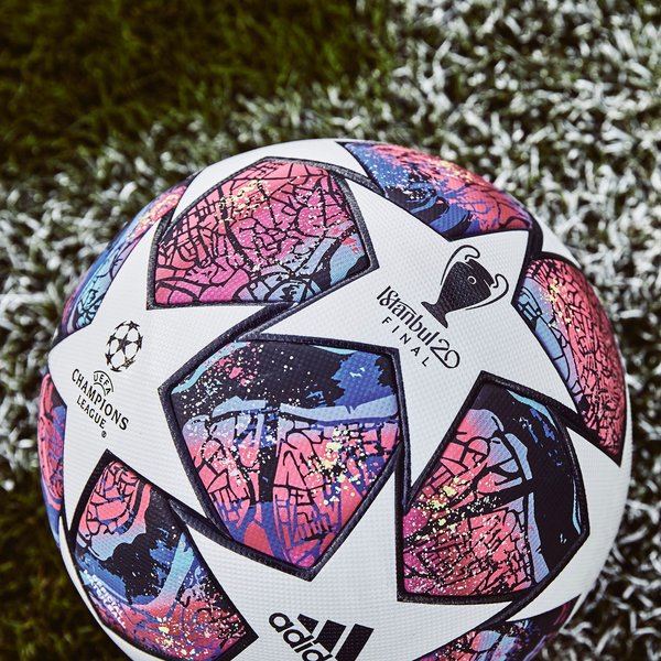 Faza pucharowa Ligi Mistrzów UEFA z nową oficjalną piłką meczową UCL Finale Instabul Pro marki Adidas. Piłka posiada ręcznie narysowany plan Stambułu, na purpurze z białymi gwiazdami.