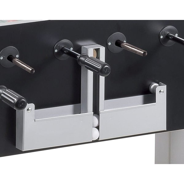 Przelotowe, wytrzymałe grille pokryte są warstwą chromu i umocowane na stalowych łożyskach z gumowymi odbojnikami. Pole gry wygłuszone zostało hartowaną szybą, która zmniejsza poziom dźwięku podczas gry oraz uniemożliwia ingerencję z zewnątrz. Wprowadzenie piłeczek w pole gry odbywa się za pomocą systemu wrzutowego, dostęp z zewnątrz jest niemożliwy. Uchwyty są plastikowe, o ergonomicznym kształcie. Bramkarze są obrotowi w zakresie 360o, co pozwala na jeszcze większą obronę bramki. Ręczny licznik punktów pozwala nam kontrolować wynik meczu.