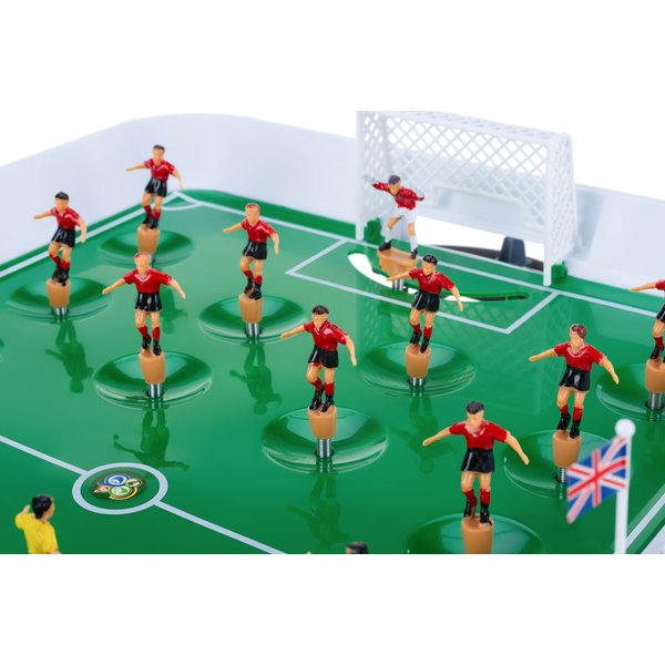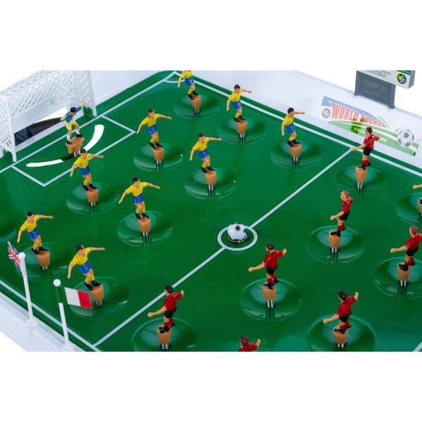 - zestaw zawiera: boisko piłkarskie, 22 zawodników w tym dwóch ruchomych bramkarzy, dwa maszty do flag, naklejki z flagami państw, tablica wyników