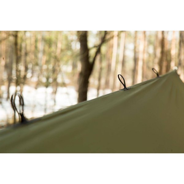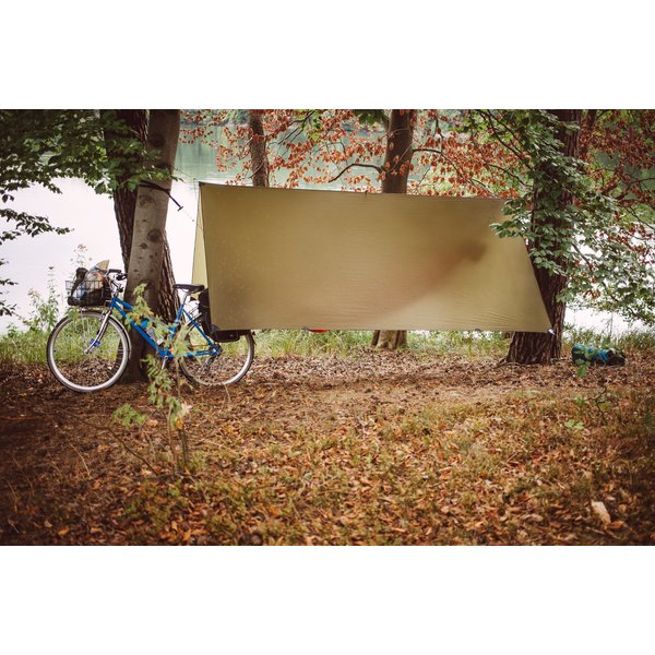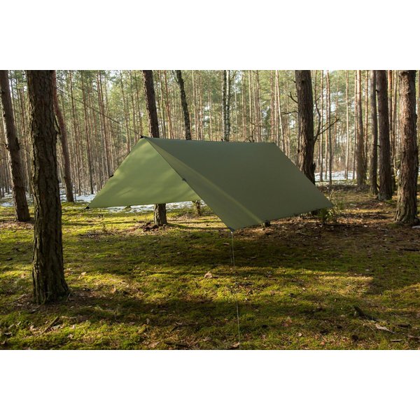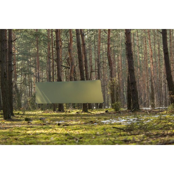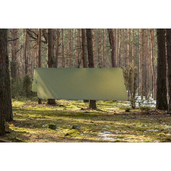 Dzięki dyskretnemu kolorowi, idealnie wtapia się w otoczenie leśnego biwaku, zapewniając nie tylko ochronę przed słońcem, ale także możliwość stworzenia ultralekkiego namiotu, parawanu czy tipi. Jego wymiary pozwalają na przestronne schronienie w przestrzeni obozowej, gdzie można spokojnie gotować, odpoczywać czy schronić się przed niepogodą. Płachta Groza jest wielokątnego kształtu, co umożliwia rozwieszenie jej na wiele sposobów, tworząc różne konfiguracje, takie jak daszek dwuspadowy, jednospadowy, "diament" czy schron.