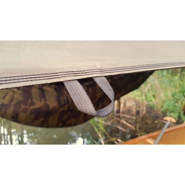 Pętle zostały specjalnie zaprojektowane tak by były znacznie łatwiejsze w obsłudze niż klasyczne. Charakterystyczny prześwit między taśmami pętli nie tylko ułatwia pracę w trudnych warunkach, ale również pozwala taśmie lepiej układać się wokół odciągów. W zestawie znajduje się linka o długości 10m, dzięki której zapewnisz płachcie poprawne napięcie tarpa.