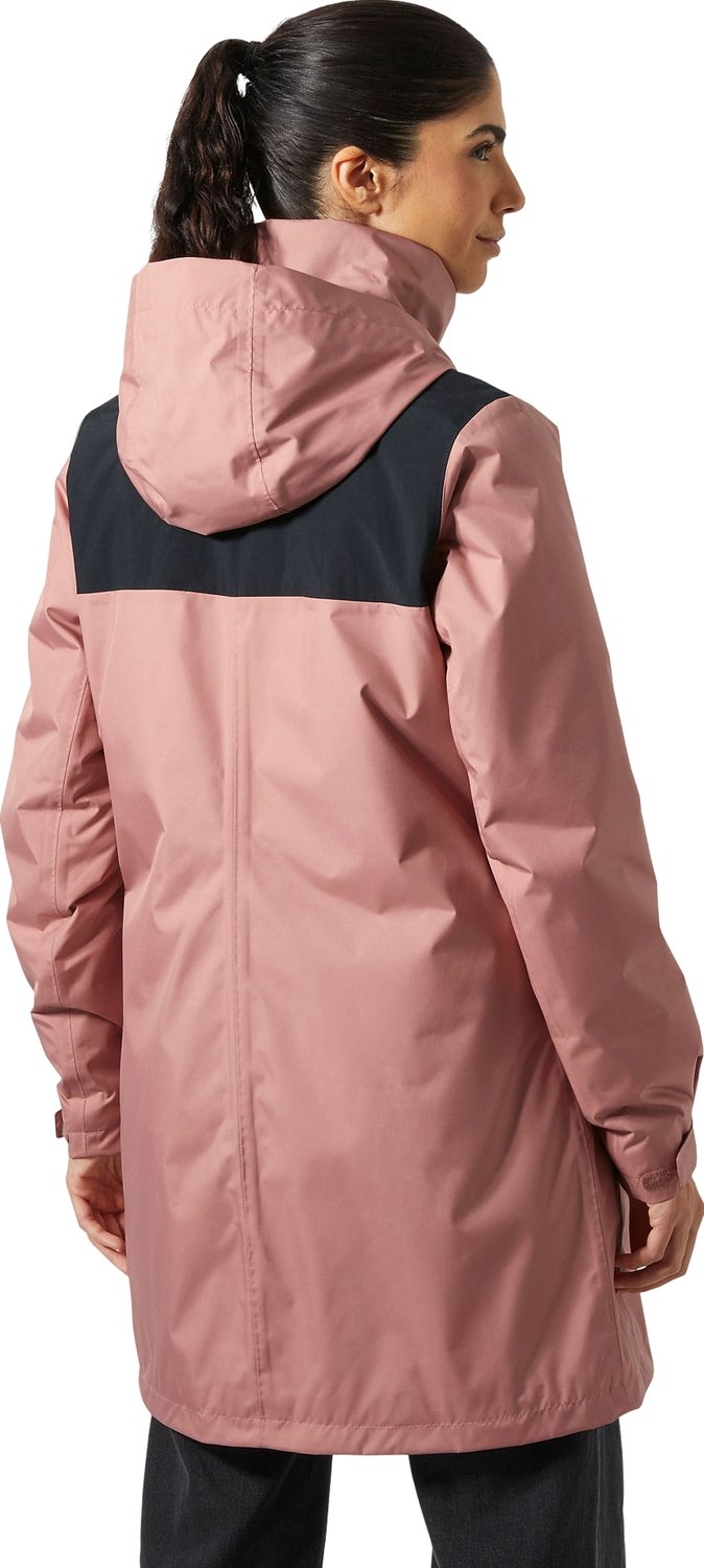 Płaszcz charakteryzuje się prostym krojem, który podkreśla sylwetkę, jednocześnie zapewniając swobodę ruchów. Subtelne, nadrukowane logo Helly Hansen na piersi dodaje mu stylowego wykończenia. Dwuwarstwowa konstrukcja płaszcza oraz powłoka DWR bez PFC podkreślają zaangażowanie marki w dostarczanie ekologicznych i bezpiecznych rozwiązań, co jest dodatkową wartością dla świadomych konsumentek. Zamek YKK gwarantuje trwałość i niezawodność, co jest szczególnie ważne w przypadku codziennego użytkowania.