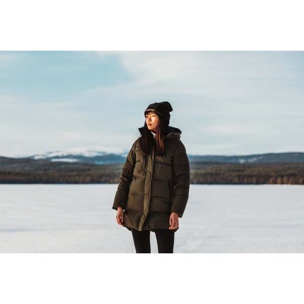 Wydłużony krój zapewnia lepsze krycie i pozytywnie wpływa na komfort noszenia. Możesz być pewna, że w tej kurtce zawsze będzie Ci ciepło. Dodatkowa ochrona nadgarstków zapobiega dostaniu się do środka mroźnego wiatru. Wysoki kołnierz z puszystym kapturem chronią kark oraz głowę. Kieszenie boczne umożliwiają przechowywanie drobiazgów. Dzięki zamknięciu na zamki YKK możesz mieć pewność, że rzeczy zostaną na swoim miejscu. Dodatkowa kieszeń na piersi pomieści dodatkowe drobiazgi. Kurtka posiada również elementy odblaskowe na rękawach, co zapewnia Ci bezpieczeństwo po zmroku.