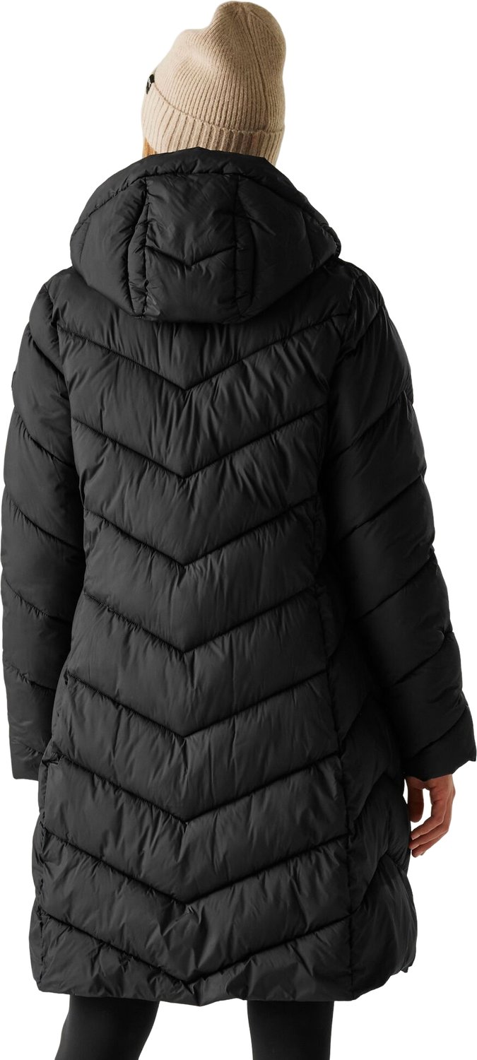 Kolejną korzyścią płynącą z wyboru tego płaszcza jest jego odporność na niekorzystne warunki pogodowe. Trwałe, hydrofobowe wykończenie zewnętrzne skutecznie chroni przed wilgocią, co jest szczególnie istotne podczas deszczowych czy śnieżnych dni. Dodatkowo, wewnętrzne mankiety oraz zintegrowany kaptur z ukrytą regulacją zwiększają ochronę przed zimnym wiatrem, zapewniając użytkowniczce dodatkowy komfort termiczny. Wbudowany kaptur dodaje płaszczowi elegancji i sprawia, że jest on jeszcze bardziej praktyczny w codziennym użytkowaniu.