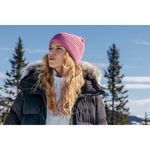 Regulowany kaptur, wyposażony w odpinane sztuczne futro, to kolejny element, który podnosi funkcjonalność tej parki. Dzięki regulacji kaptura, użytkowniczki mogą dopasować go do swoich indywidualnych potrzeb, co zapewnia dodatkową ochronę przed wiatrem i śniegiem. Dodatkowym atutem są ściągacze przy mankietach, które skutecznie blokują zimne powietrze, gwarantując ciepło i komfort.
