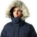 Regulowany kaptur, wyposażony w odpinane sztuczne futro, to kolejny element, który podnosi funkcjonalność tej parki. Dzięki regulacji kaptura, użytkowniczki mogą dopasować go do swoich indywidualnych potrzeb, co zapewnia dodatkową ochronę przed wiatrem i śniegiem. Dodatkowym atutem są ściągacze przy mankietach, które skutecznie blokują zimne powietrze, gwarantując ciepło i komfort.