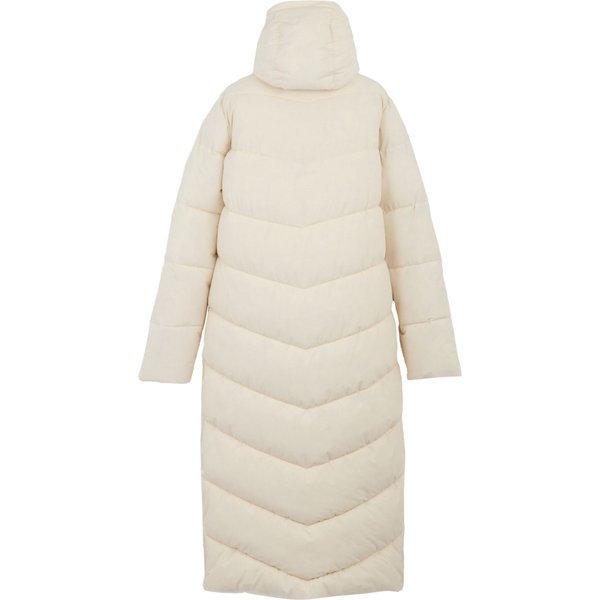 Zintegrowany kaptur ze ściągaczem to kolejny atut, który pozwala dostosować ochronę do indywidualnych potrzeb. Możliwość regulacji kaptura sprawia, że można go idealnie dopasować, chroniąc twarz przed zimnym wiatrem. Wewnętrzna podszewka z tafty poliestrowej oraz mankiety na rękawach dodatkowo izolują ciepło, zapewniając komfort termiczny nawet w najchłodniejsze dni. Dzięki zastosowaniu wysokiej jakości syntetycznej izolacji puchowej z recyklingu, płaszcz Eloria jest nie tylko ekologiczny, ale także skutecznie zatrzymuje ciepło, nie obciążając sylwetki. Jest to doskonała alternatywa dla tradycyjnego puchu, pozwalając cieszyć się wszystkimi jego zaletami, jednocześnie dbając o środowisko. Gramatura izolacji wynosząca 280 g/m² sprawia, że płaszcz jest lekki, ale bardzo ciepły, co czyni go idealnym wyborem na codzienne wyjścia w zimowe dni.
